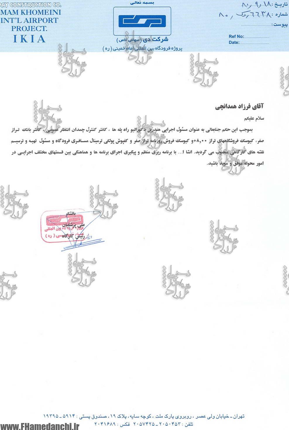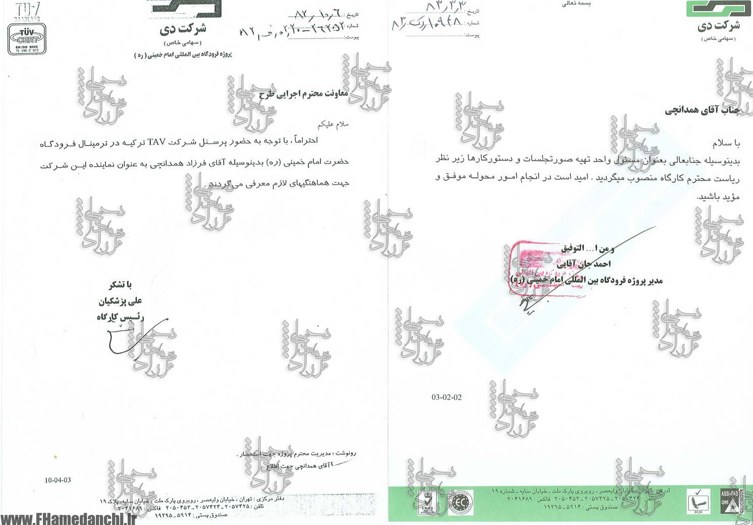 پروژه فرودگاه امام(ره) 10/82 نماینده در شرکت TAV ترکیه