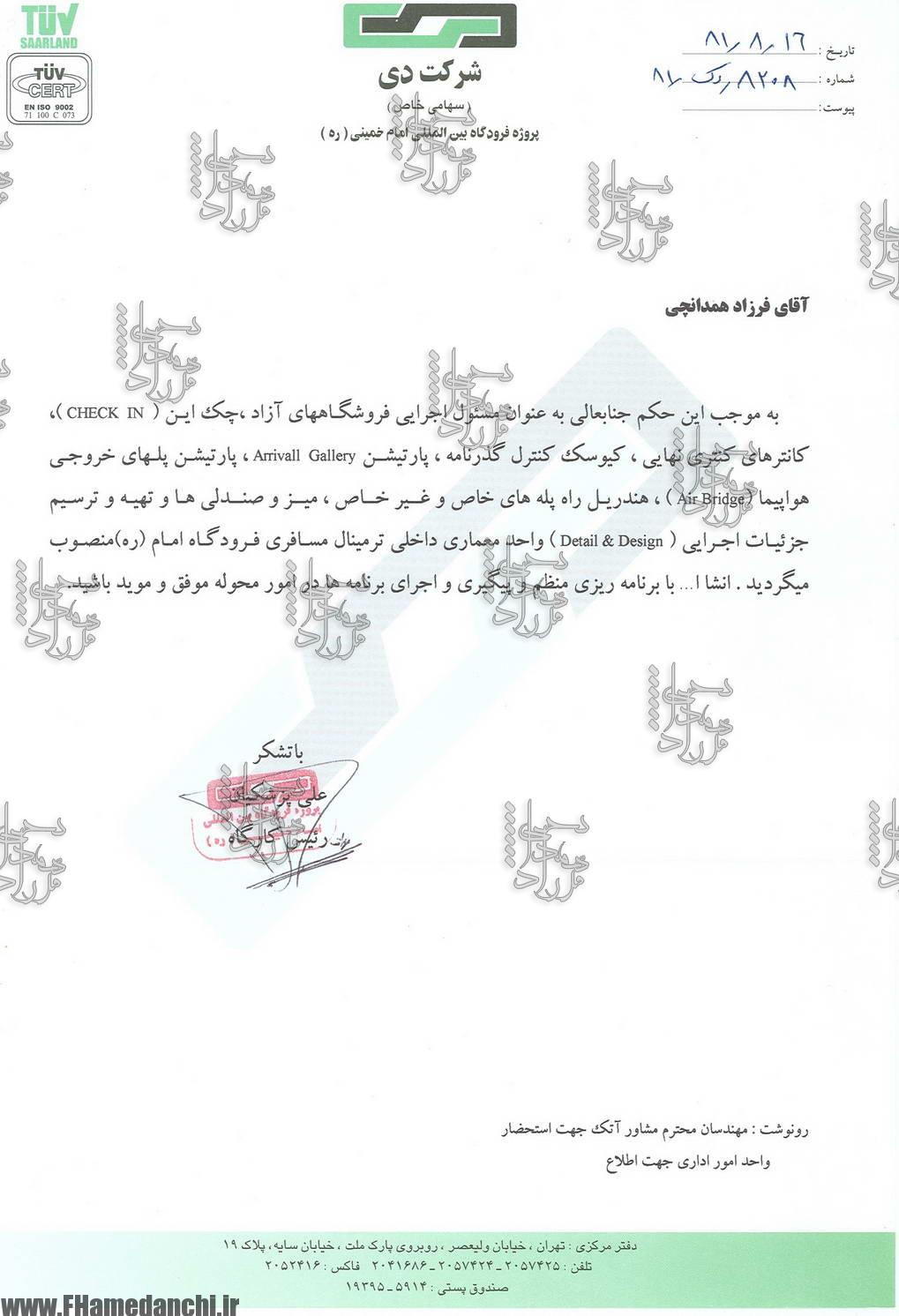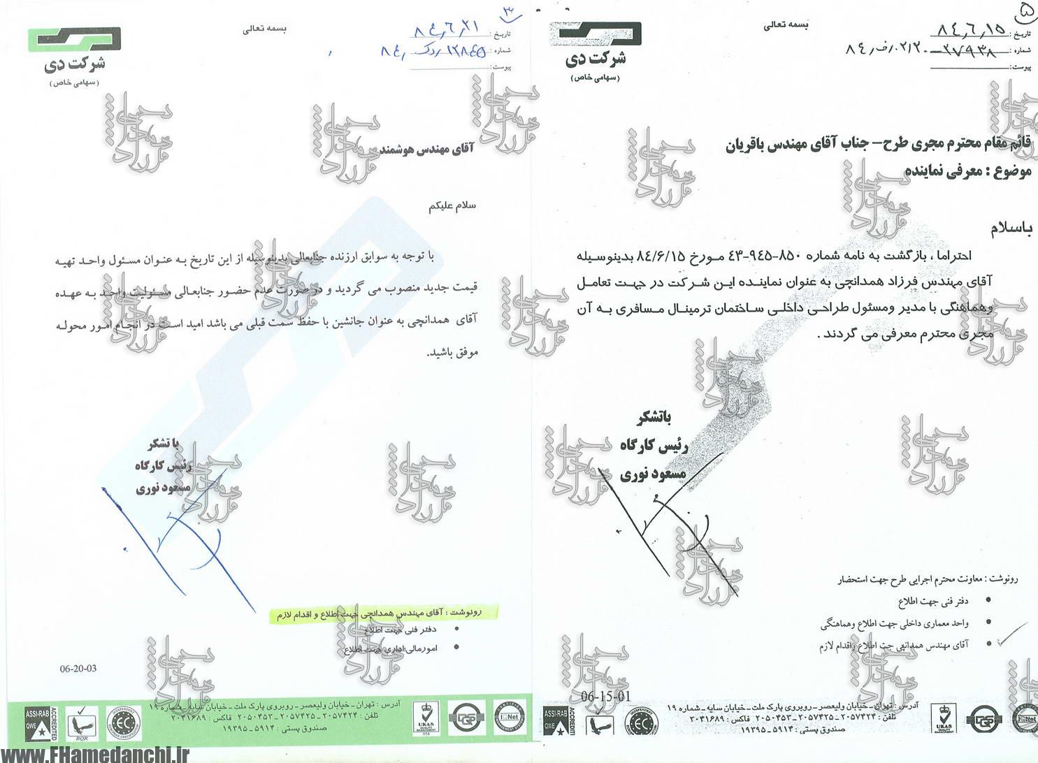 پروژه فرودگاه امام(ره) 6/84 نماینده طراحی در مجری طرح