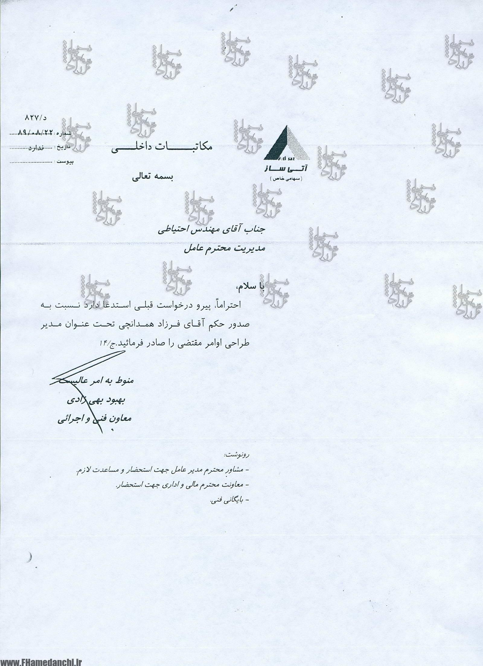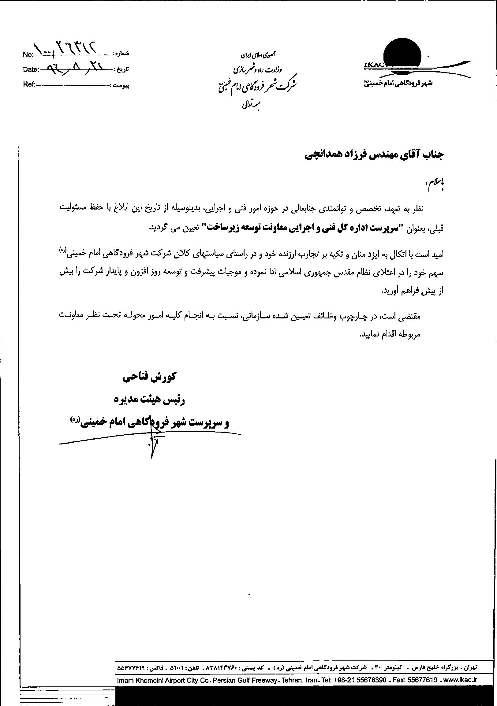پروژه فرودگاه امام(ره) 12/83 مسئول اجرایی با سمت قبلی