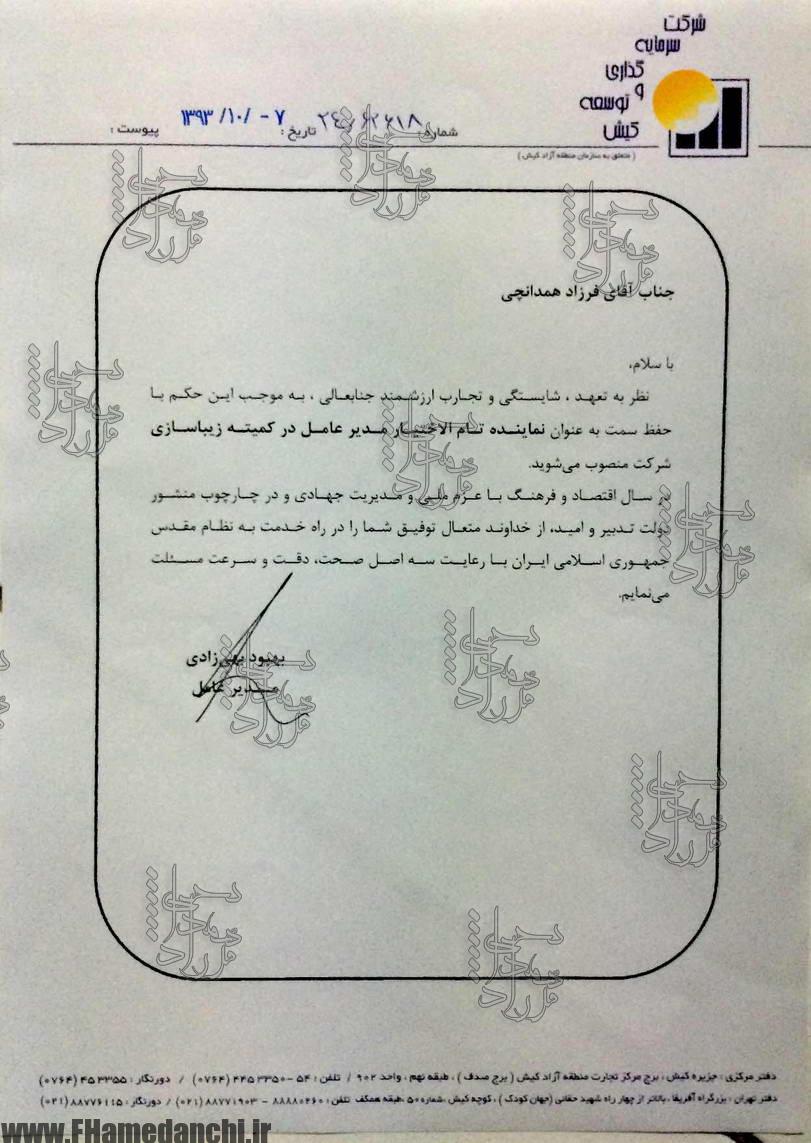 نماینده تام الاختیار مدیر عامل در کمیته زیباسازی