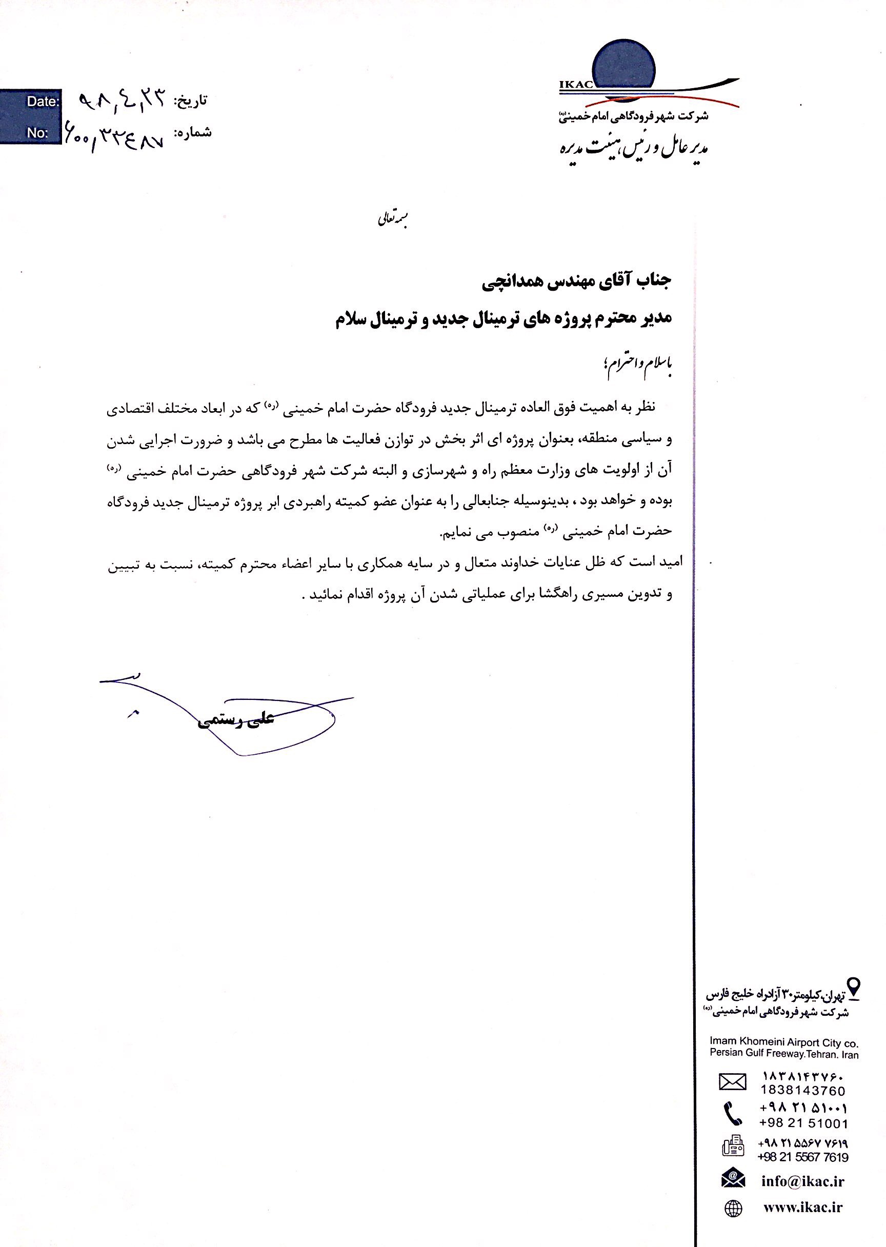 عضو کمیته راهبری ابر پروژه ترمینال جدید فرودگاه حضرت امام خمینی (ره)